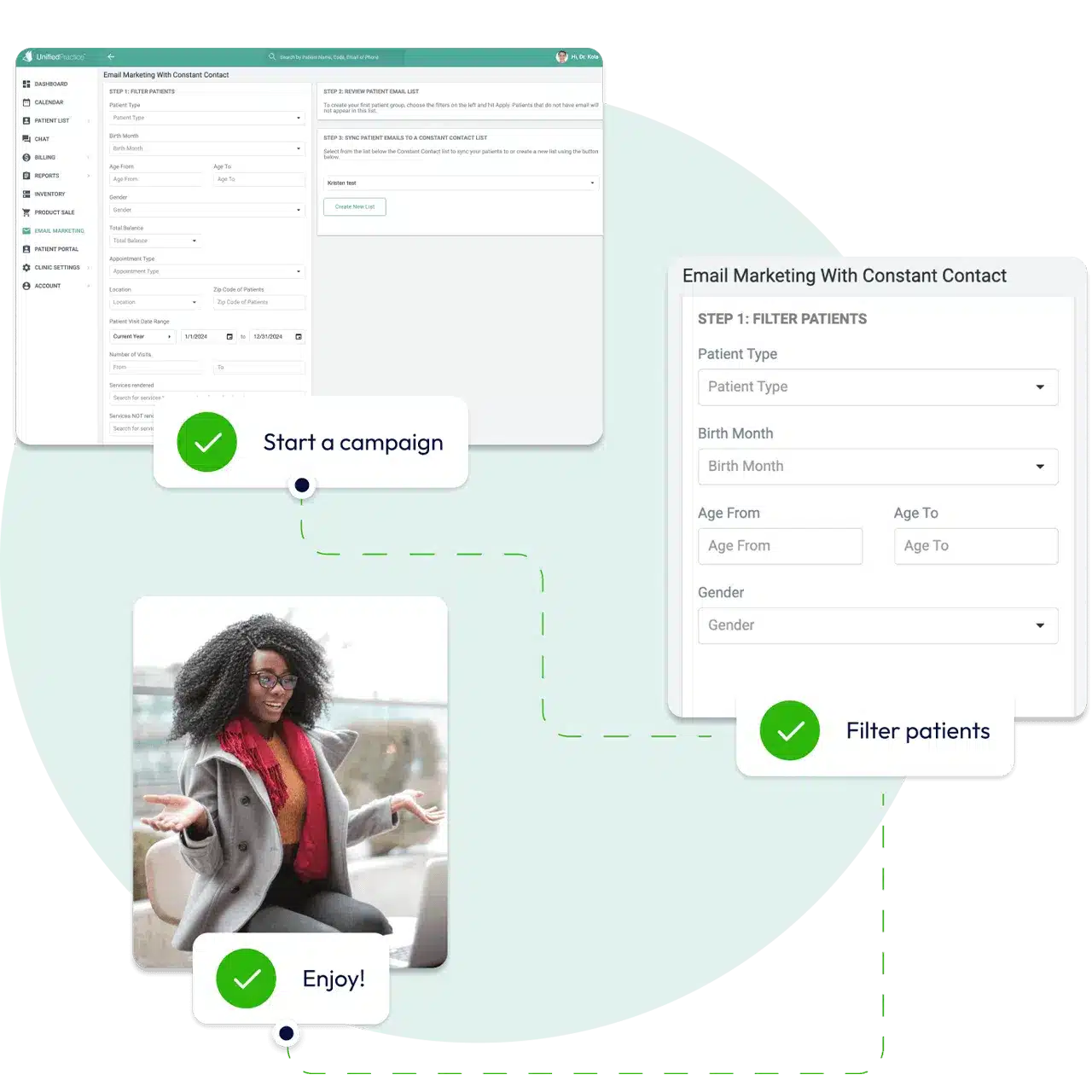 Email Marketing Integration: Send HIPAA-compliant email marketing to the right patient at the right time using Constant Contact’s Unified Practice integration.
