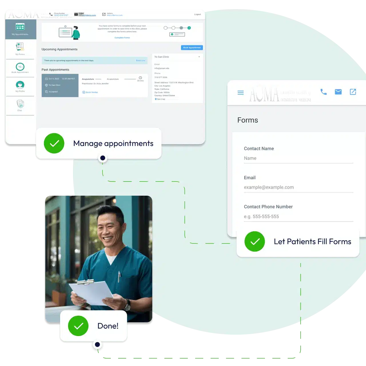 Give your patients the ultimate convenience by providing them with secure access to their health records, allowing them to easily schedule appointments, and enabling effortless communication with your team. With Unified Practice patients can take control of their TCM journey while ensuring their privacy and security are prioritized at every step.