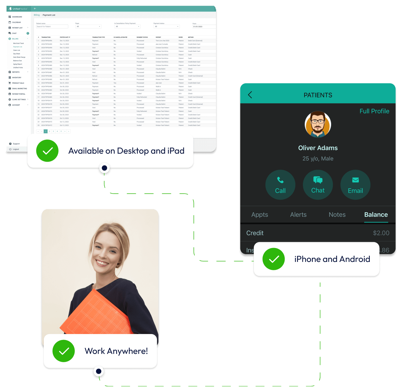 Manage your clinic seamlessly across various platforms including Web, iPadOS, iOS, and Android. Enjoy the flexibility of accessing and controlling your practice from any device, anywhere.