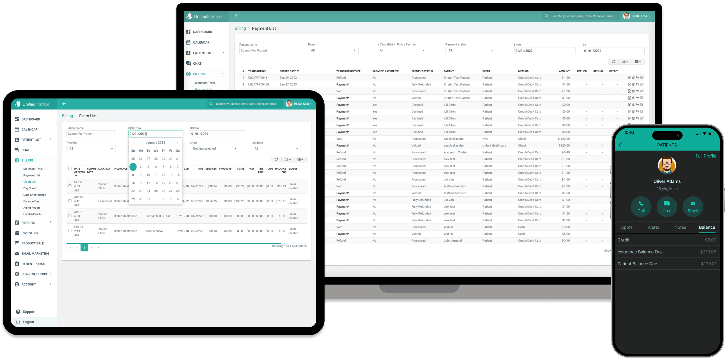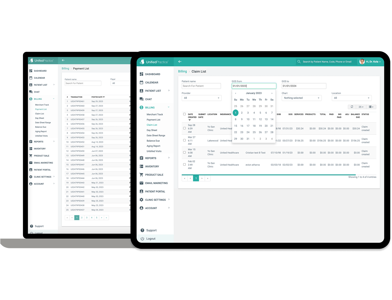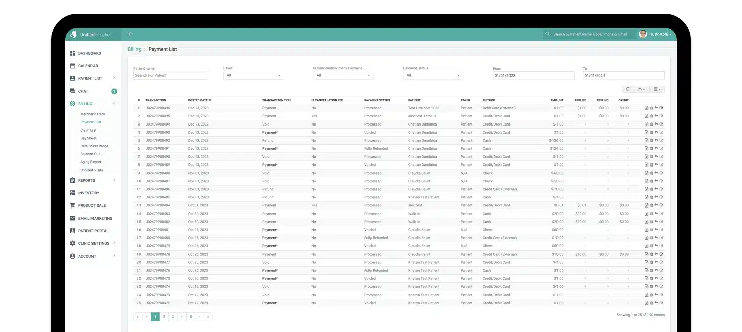 Unified Practice billing streamlines financial management. It tracks payments across all patient types, from insurance to promotional packages, and simplifies administrative tasks with one-click invoice and superbill dispatch. The platform supports HCFA/CMS-1500 form generation, is ICD-10 ready with ICD-9 backdate billing capability, and integrates seamlessly with UnifiedPay for smooth payment processing. This powerful solution provides detailed billing reports for better business tracking, ensuring a seamless, efficient billing experience for healthcare providers.